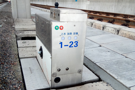半地上型鐵路客車(chē)智能上水設(shè)備,設(shè)備的一半安裝于地下設(shè)備井內(nèi),一半在地上。殼體為不銹鋼材質(zhì),遙控控制工作距離在70米范圍以?xún)?nèi)。能完成有電和無(wú)電情況下的正常上水,并能實(shí)現(xiàn)寒冷地區(qū)和極熱環(huán)境(-35℃-60℃)的正常上水工作。食品級(jí)上水膠管具有權(quán)威機(jī)構(gòu)認(rèn)證證書(shū),符合飲用水標(biāo)準(zhǔn)。